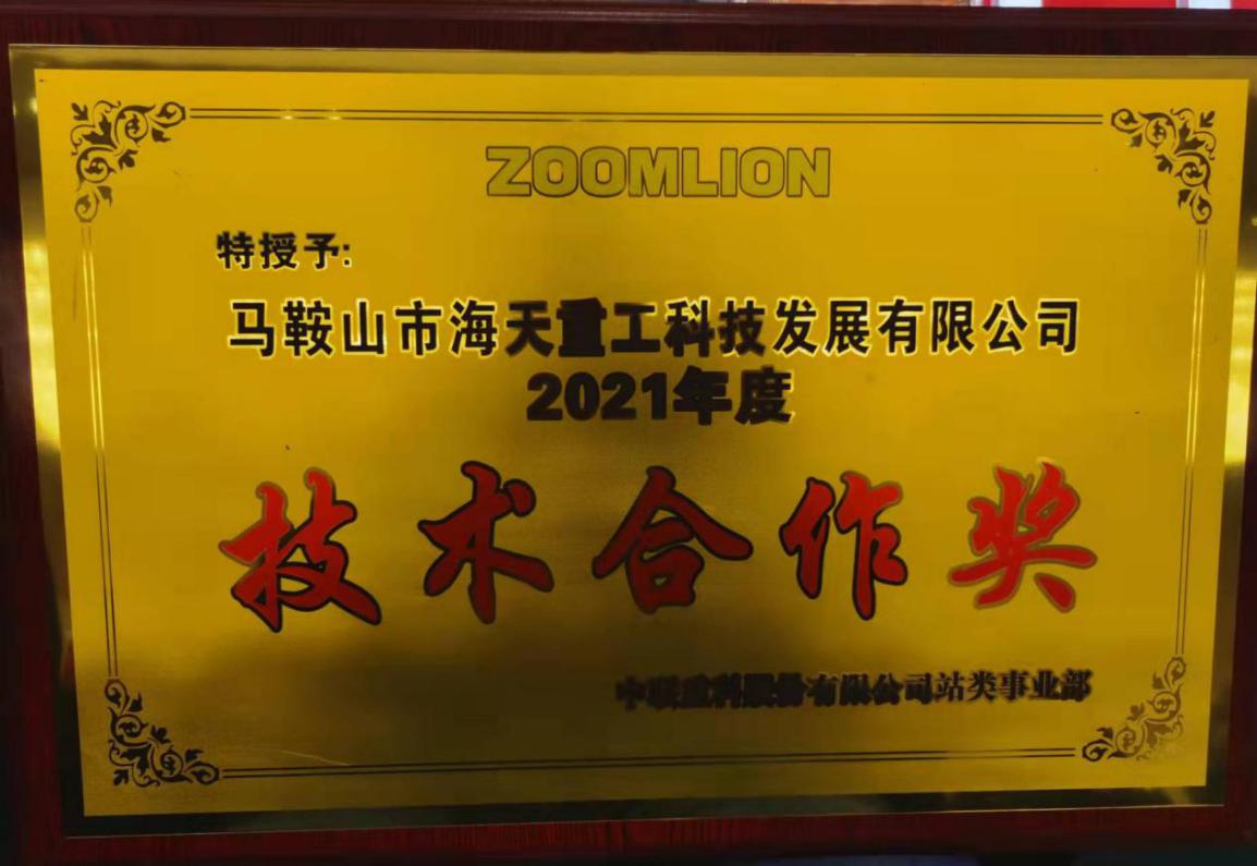 海天重工1月9日訊(通訊員劉輝)2022年1月8日,中聯重科2021年度供應商年終總結暨頒獎大會在長沙隆重召開,海天重工作為重點供應商受邀參加了這一盛會,并喜獲“2021年度技術合作獎”。