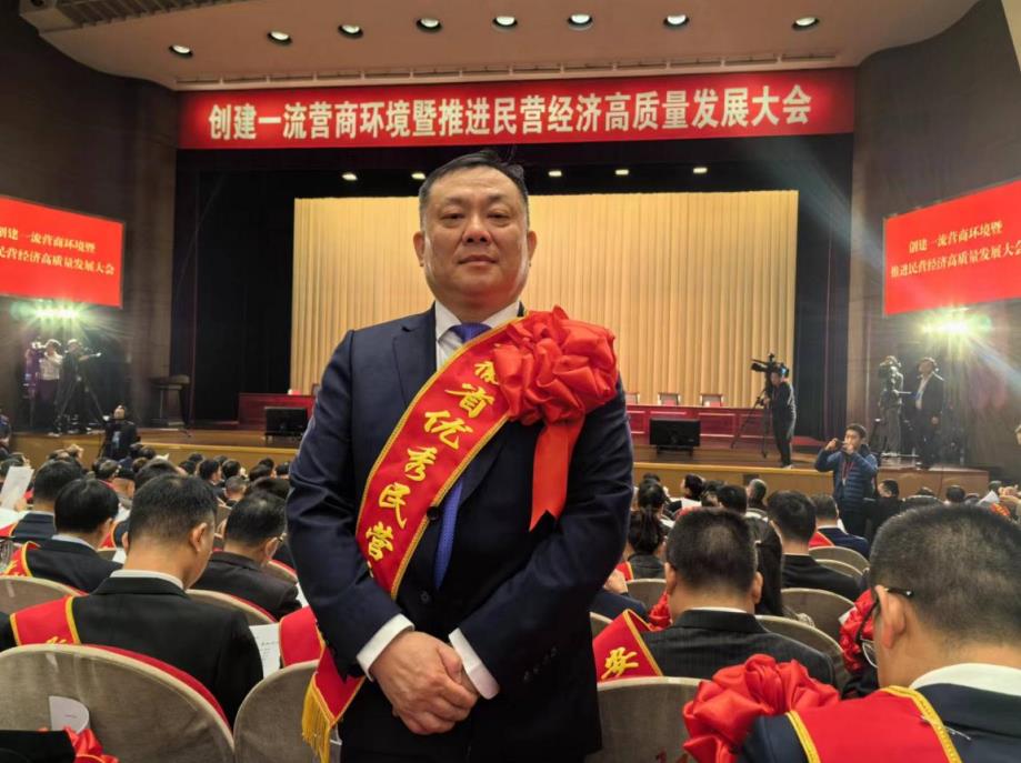 會議通報表揚了全省 100 家優秀民營企業、100 位優秀民營企業家。馬鞍山市海天重工科技發展有限公司受到表彰,獲得“安徽省優秀民營企業”殊榮。海天重工董事長孫愛民接受了頒獎。